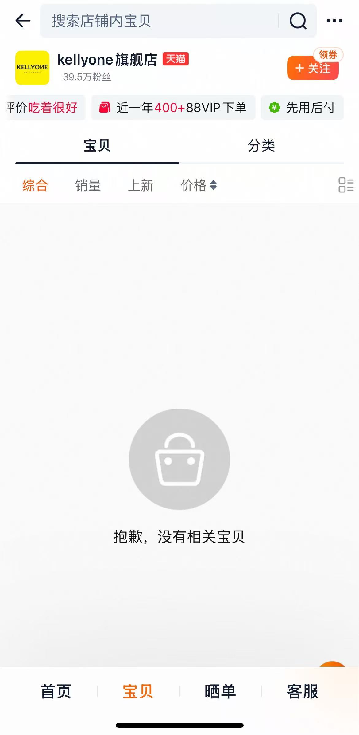 记者在一大型网购平台检索KELLYONE旗舰店,发现店铺内无产品