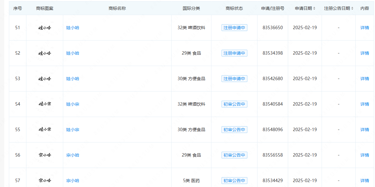 今年以来,宏胜申请多枚“娃小宗”“宗小哈”“娃小哈”商标