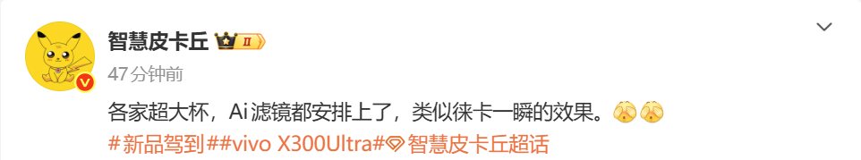 【CNMO科技消息】12月31日,数码博主“智慧皮卡丘”爆料称股赢家,各个手机厂商将于明年发布的超大杯机型均将配备AI滤镜,实际效果会类似于小米17 Ultra上的“徕卡一瞬”。